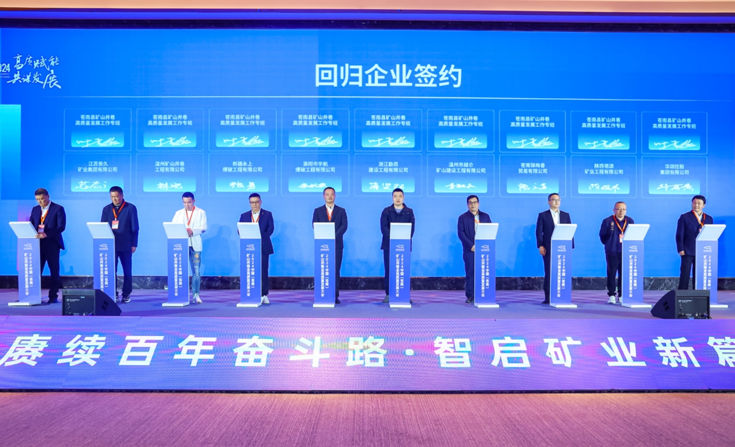 会上,苍南县人民政府与浙江省机电集团有限公司进行战略合作签约。苍南县矿山井巷高质量发展工作专班与9家回归企业、5家总部增量企业进行合作签约,进一步助推矿山井巷产业板块做大做强。